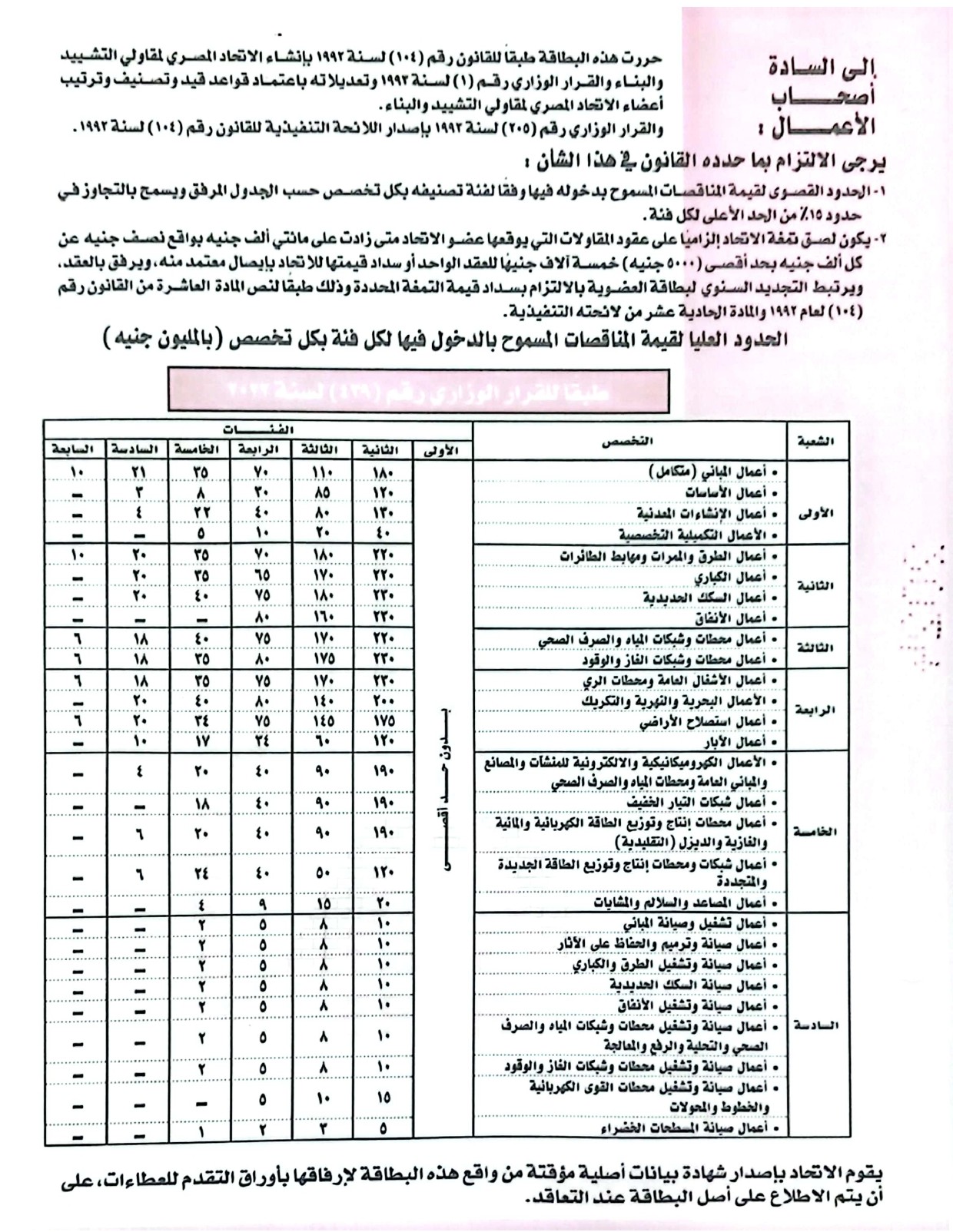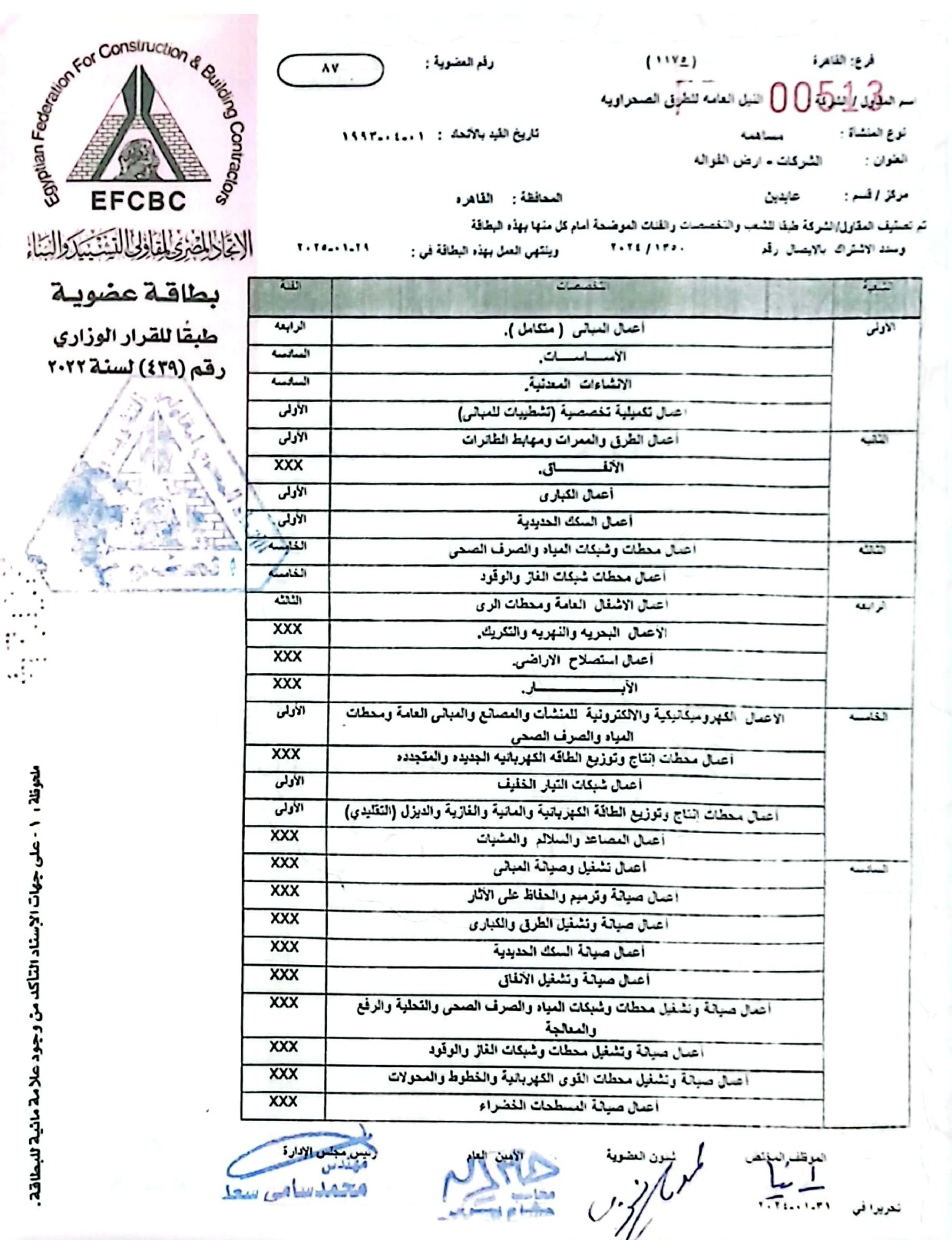 عضوية الاتحاد المصري لمقاولي التشييد والبناء